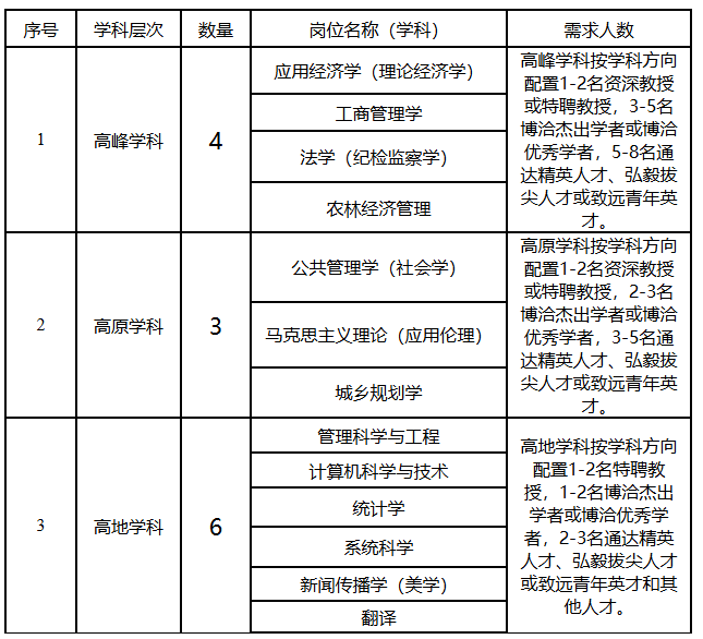 根据学科建设需要,确定“登峰计划”各学科各层次岗位设置方案和遴选名额,公开发布遴选需求。